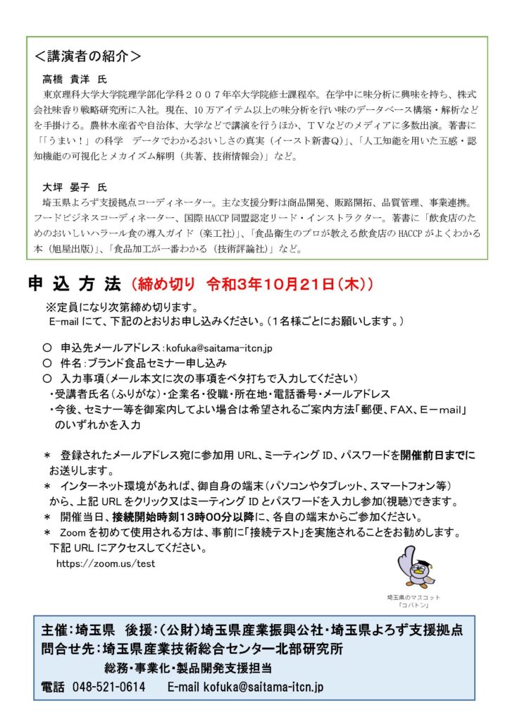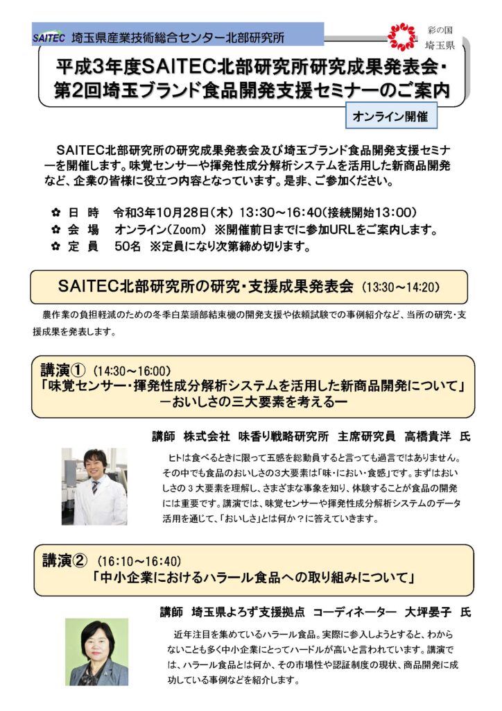 【オンライン開催】平成3年度 SAITEC北部研究所研究成果発表会・第2回埼玉ブランド食品開発支援セミナー
