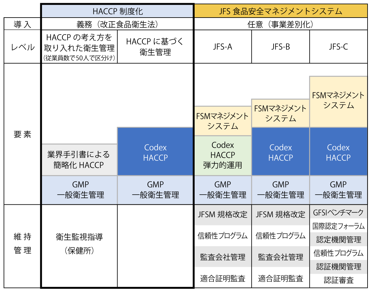 「HACCP制度化」(太枠で囲んだ左側の2列)