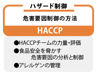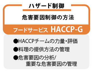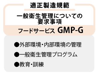 JFS規格(セクターG)〈フードサービス〉は、一般衛生管理に加え、HACCPを実施する事業者を想定した規格で3つの要素からなっています。
